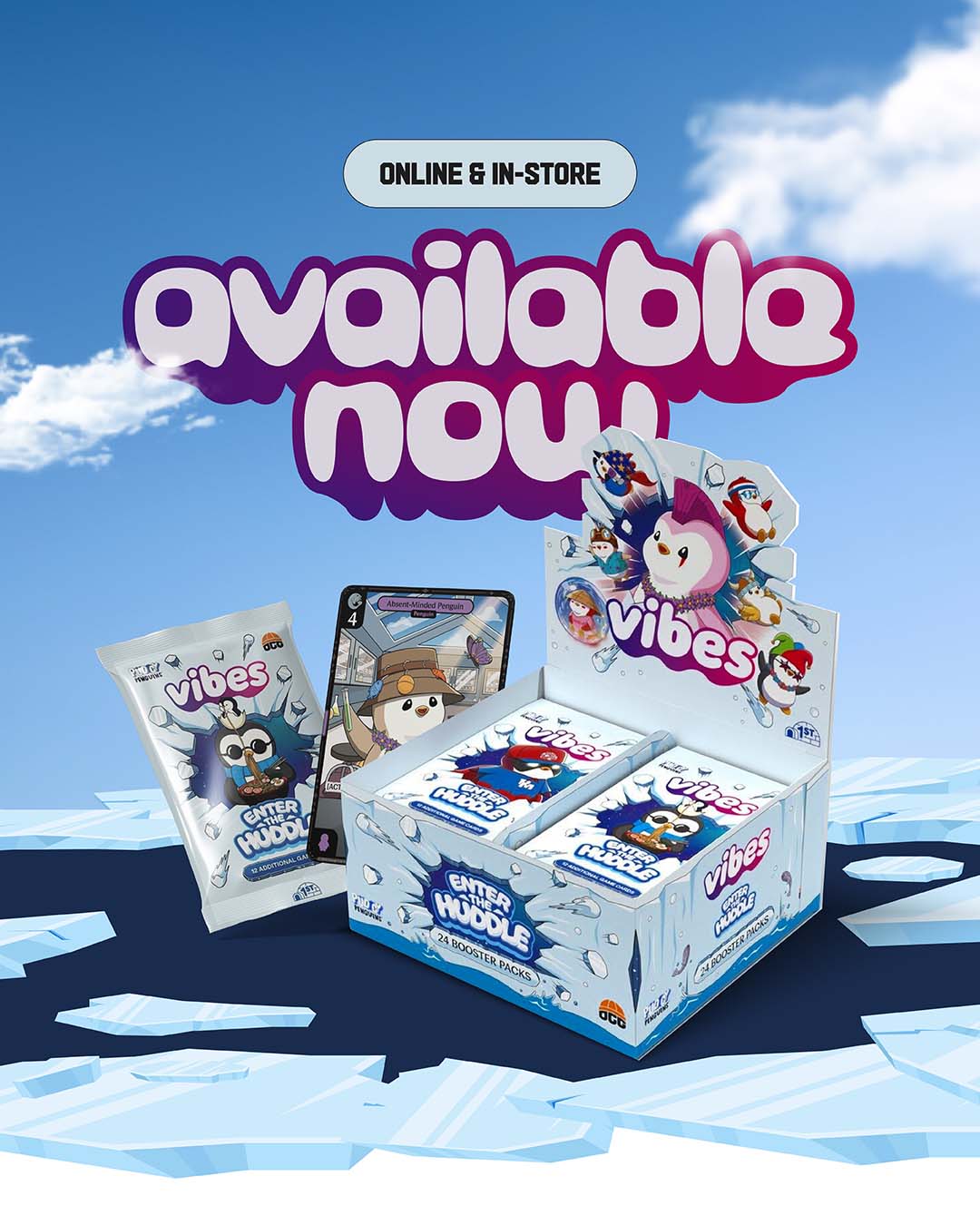 Whether you’re a Trading Card Game rookie or a seasoned pro, Enter the Huddle is perfect for collectors, players, and traders. Build your ultimate Penguin squad, trade with friends, and dive into the world of Vibes!
