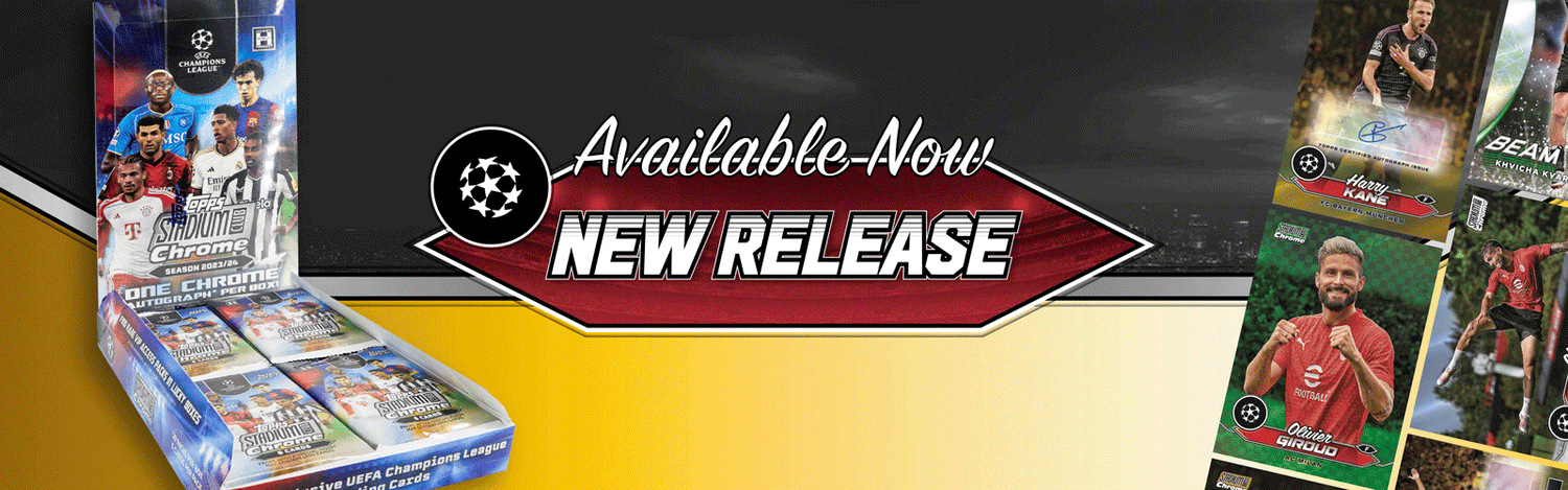 Packed with spectacular imagery and guaranteed autograph hits, the 2023/24 Stadium Club Chrome is your gateway to collecting UEFA’s top stars, rookies, and legends. Each box promises one autograph, making it the ultimate treasure for card collectors!