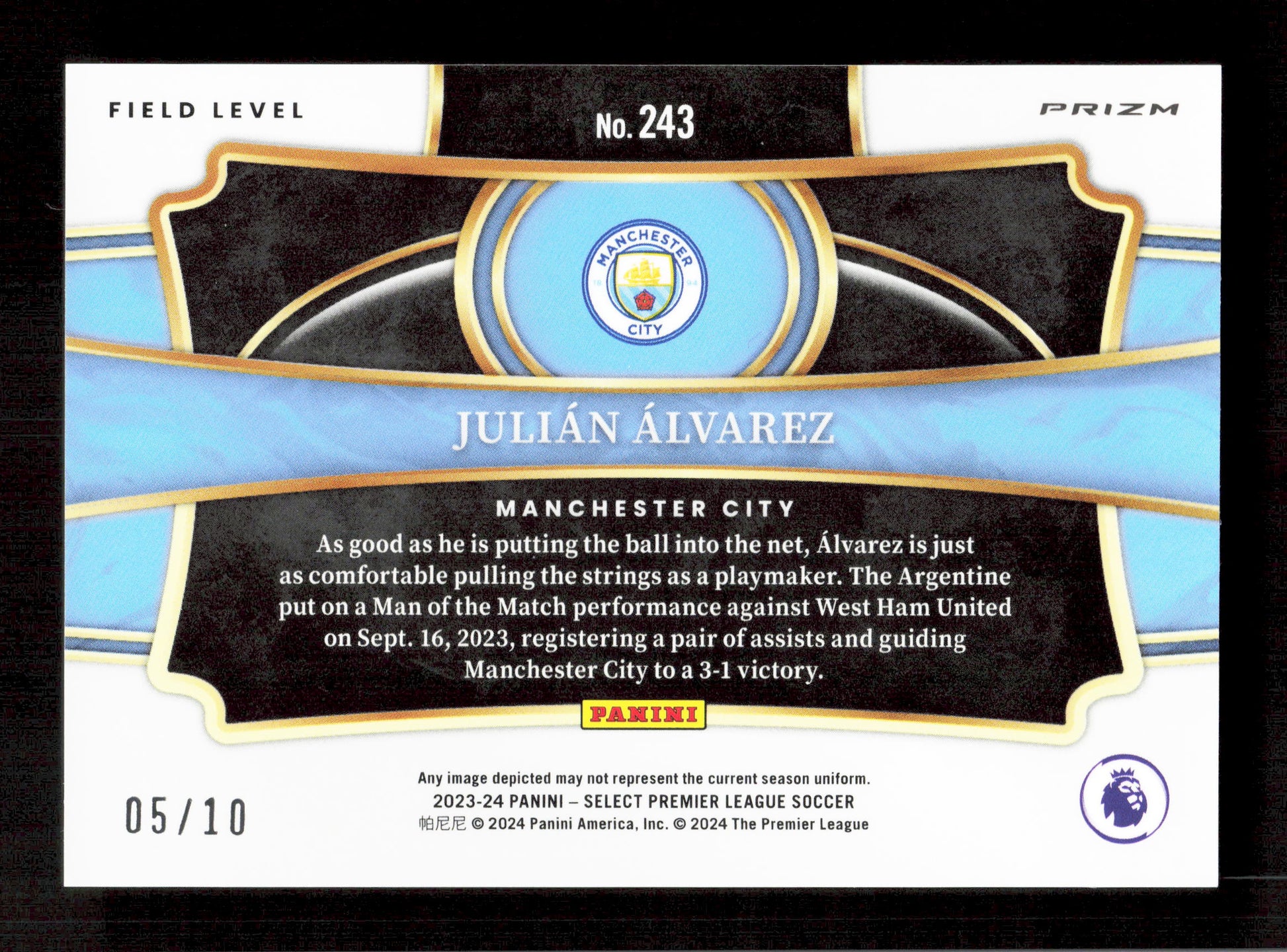 Panini Julian Alvarez Gold Field Level Prizm /10 Panini Prizm Premier League 2023-24 #243