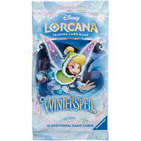 Embark on an enchanting adventure with the Disney Lorcana Trading Card Game and expand your collection with the Winterspell Booster Pack. Each pack contains 12 beautifully illustrated cards that capture the essence of beloved Disney characters, providing an immersive experience like no other. Inside, you'll find six common cards, three uncommon cards, two of rare, super rare, or legendary rarity, and one randomly selected foil card, making every pack an exciting discovery.