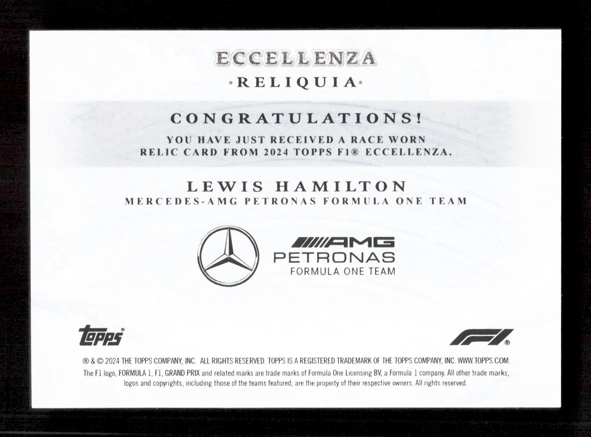 Topps Lewis Hamilton Base Race Worn Reliquia Card Eccellenza 2024