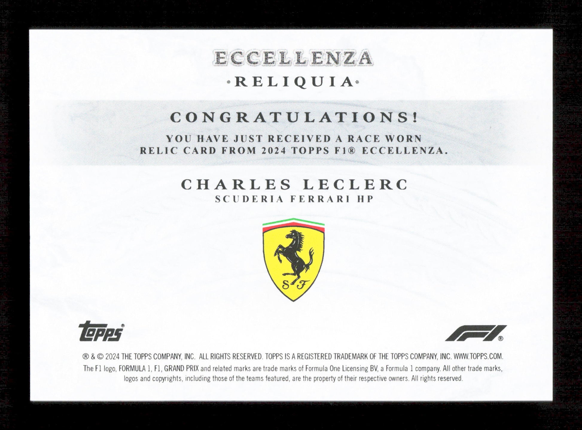 Topps Charles Leclerc Base Race Worn Reliquia Card Eccellenza 2024