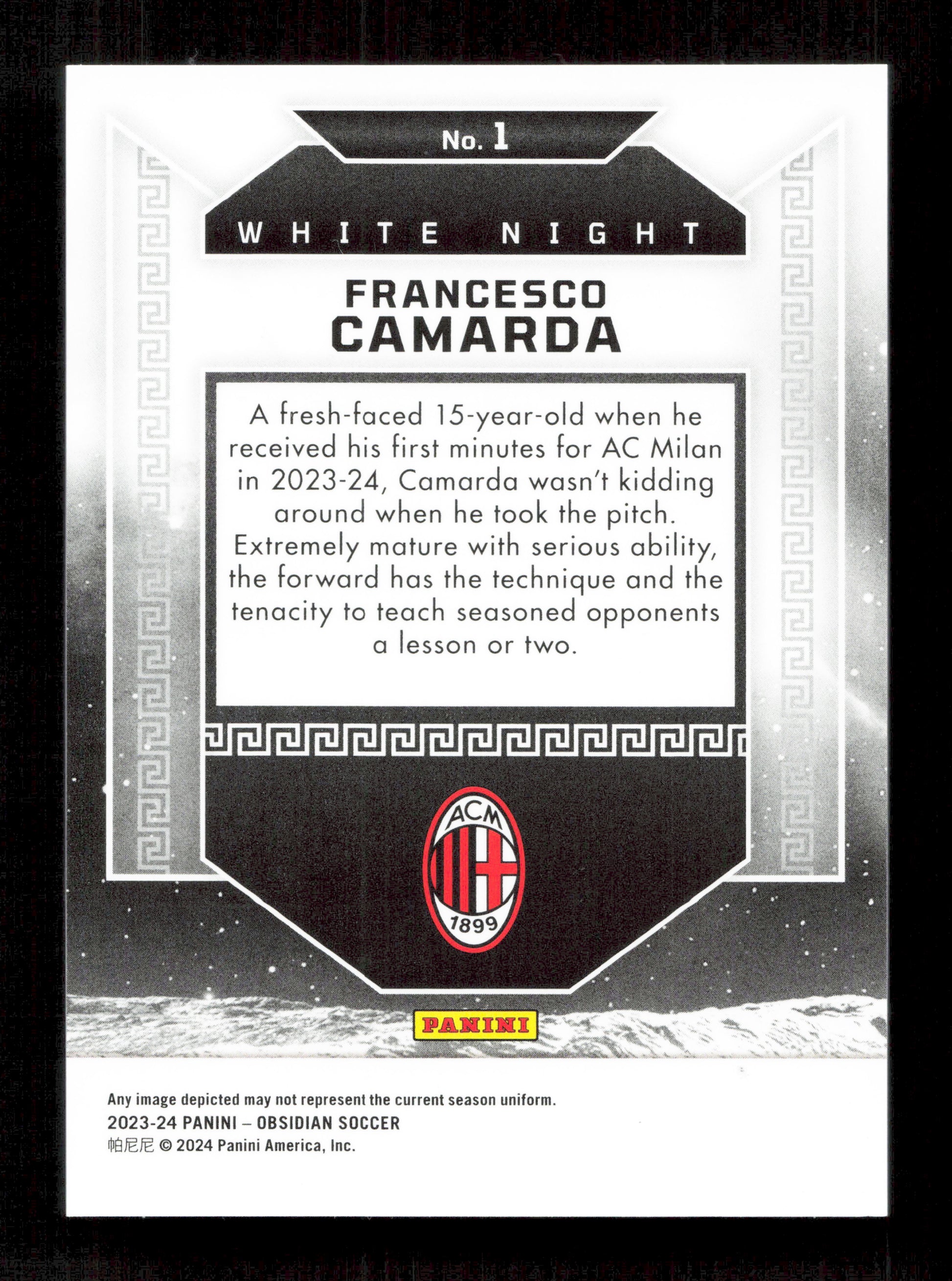 Panini Francesco Camarda White Night Card RC Panini Obsidian 2023-24 #1
