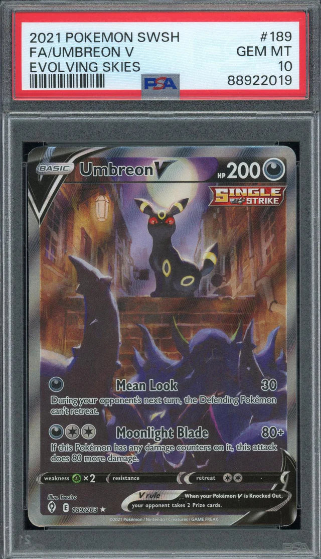 -2021 Sword & Shield Umbreon V Evolving Skies Alt Art #189 PSA 10