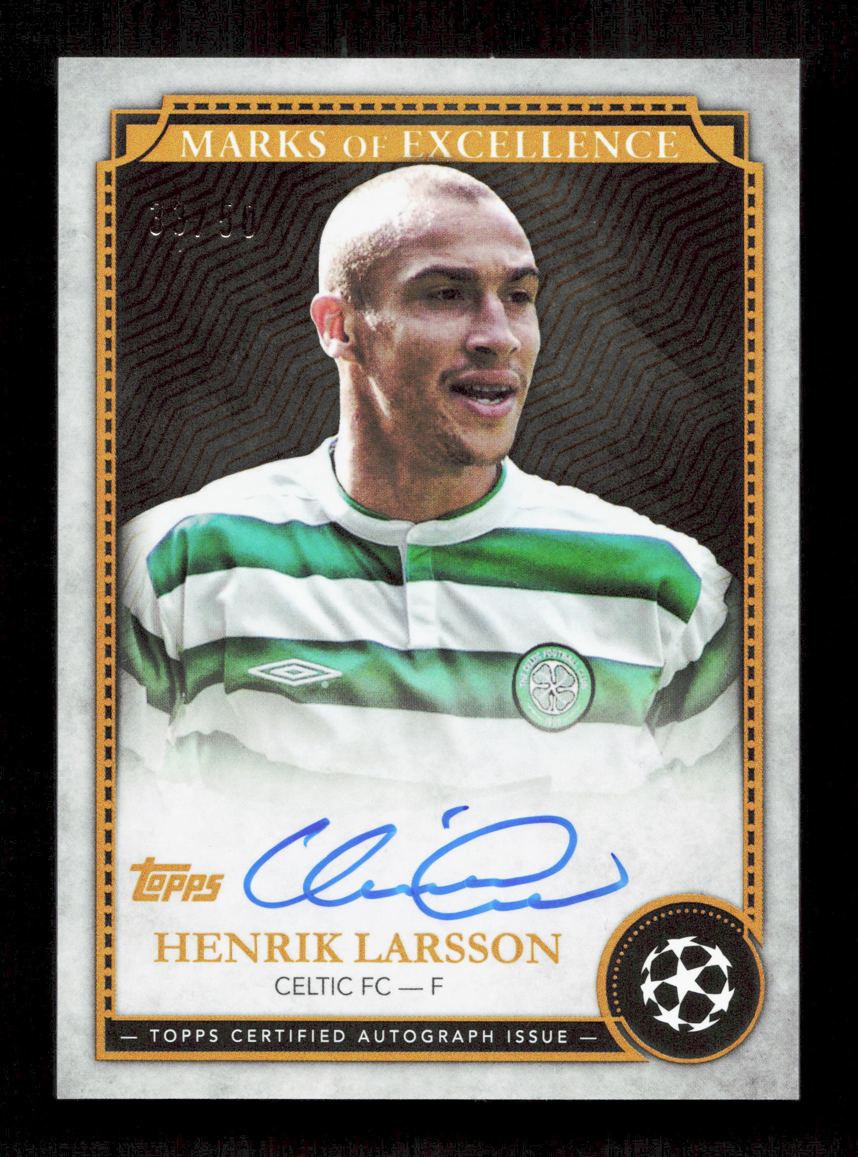 Topps Henrik Larsson Gold Marks Of Excellence On-Card Autograph Card /50 Finest UEFA Champions League 2024