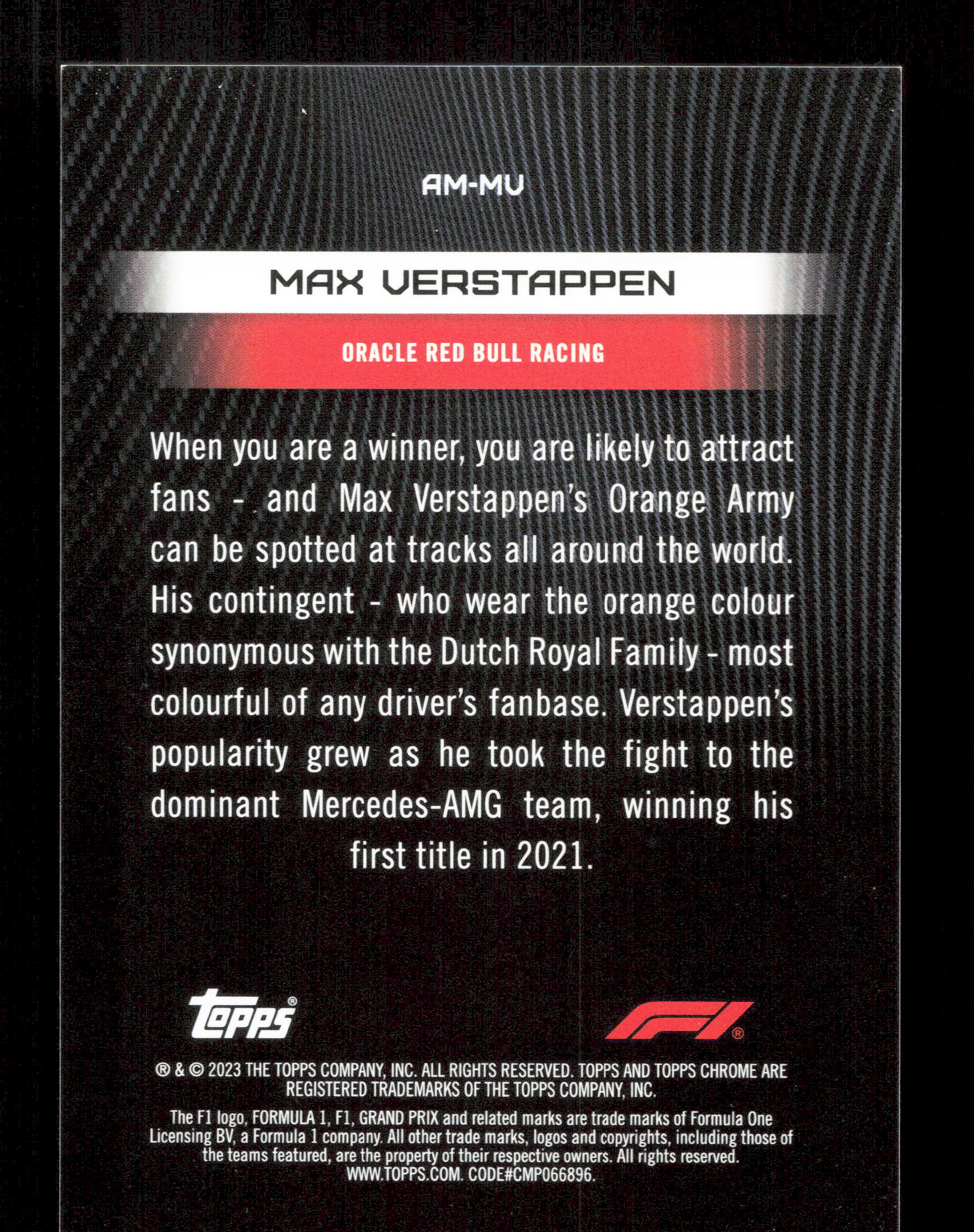 Topps Max Verstappen F1 Armour Card /50 (Case Hit) Chrome Formula 1 2023