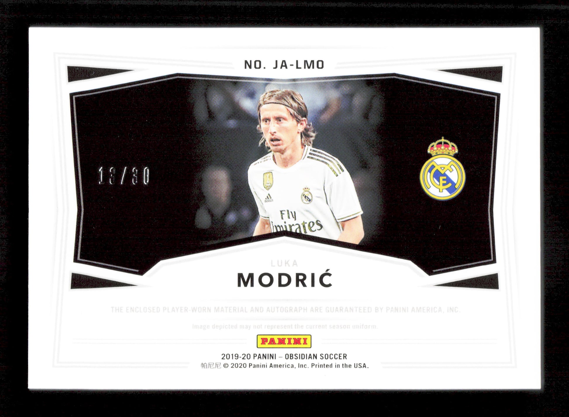 Panini Luka Modric Player Worn Autograph Relic Card /30 Panini Obsidian Soccer 2019-20