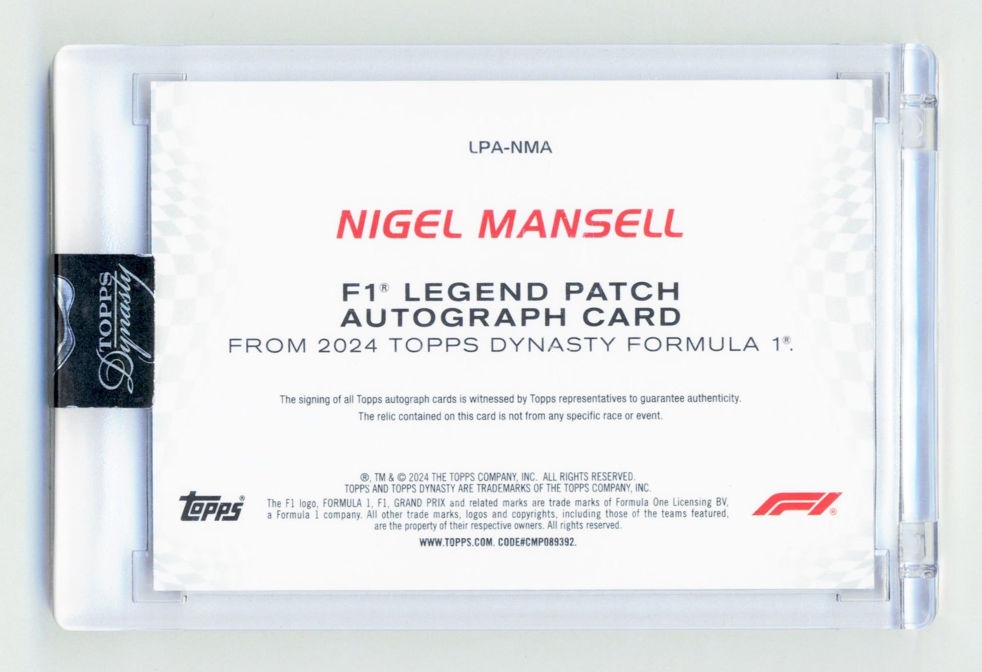 Topps Nigel Mansell F1 Legend Patch Autograph Card Dynasty Formula 1 2024