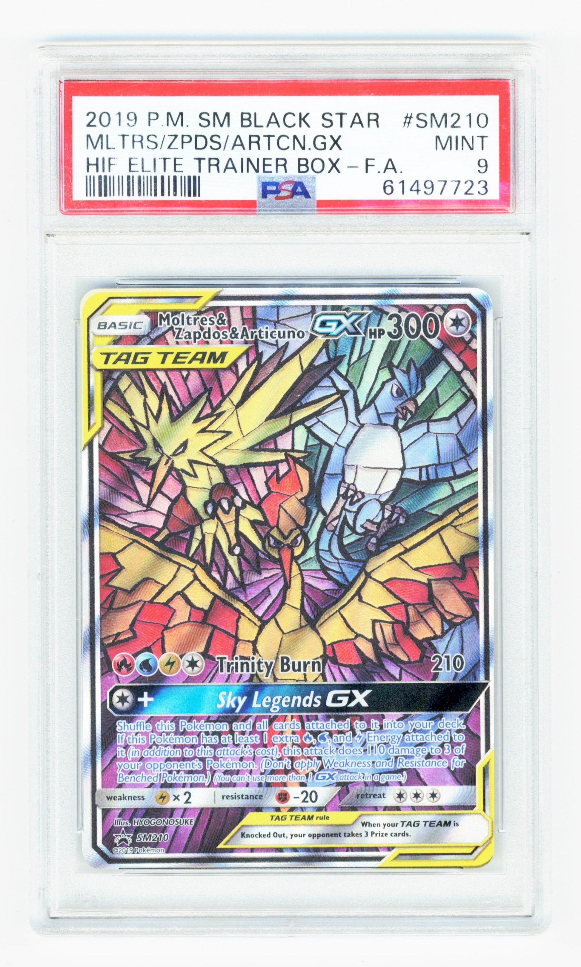 Pokemon Moltres & Zapdos & Articuno #SM210 Pokemon Sun & Moon Black Star Elite Trainer Box 2019 PSA9