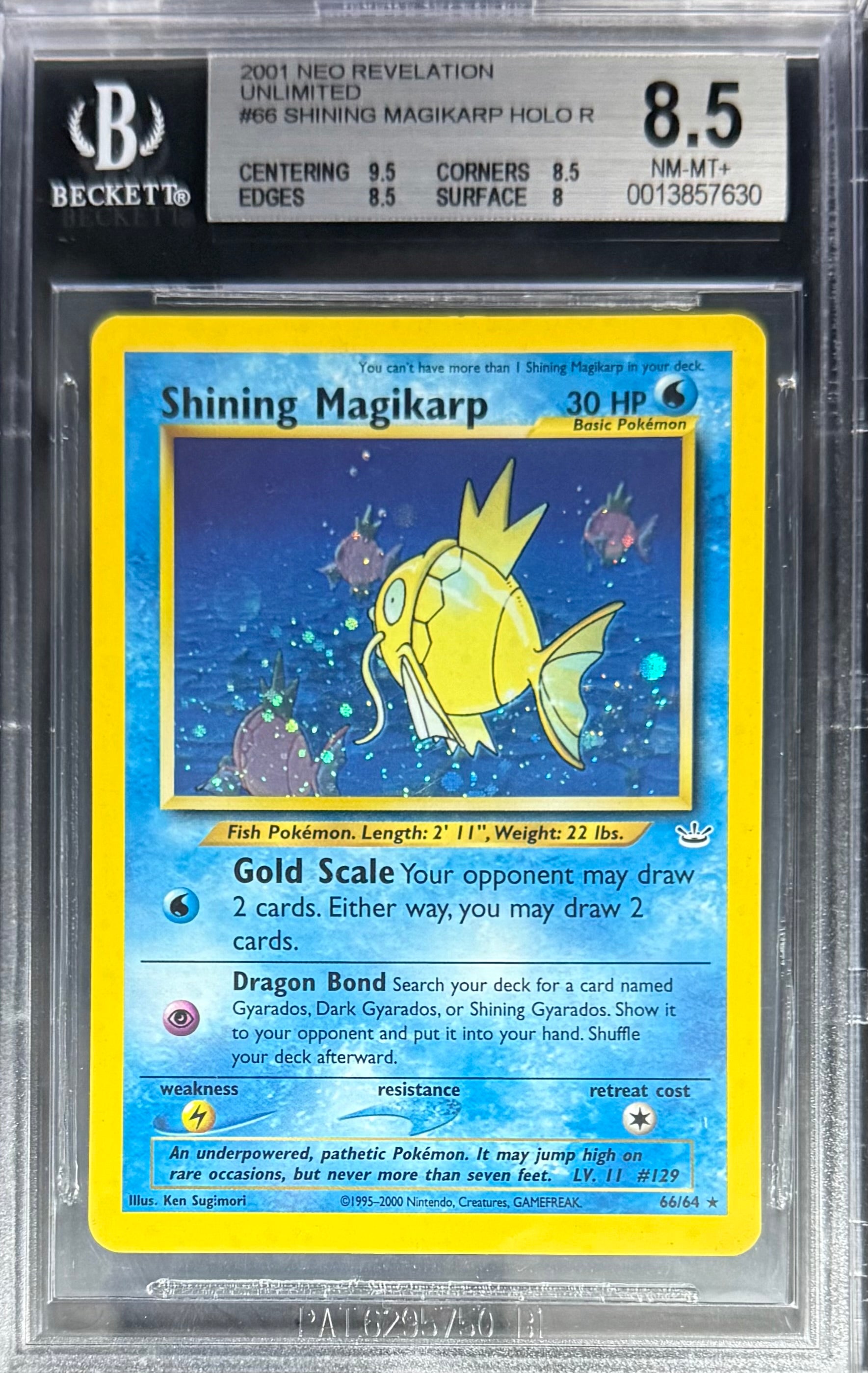 Pokemon Shining Magikarp 66/64 Holo Pokemon Neo Revelation Unlimited 2001 Beckett BGS 8.5