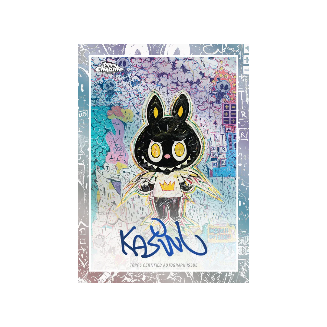 Each box includes four Chrome® base cards and one Chrome® parallel, plus a collectible keyring case to display your card just like your Labubu! Cards feature artwork from Labubu creator and artist Kasing Lung.